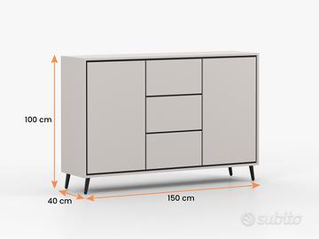 Trasforma il tuo spazio living in un ambiente di raffinata eleganza con la collezione Johannesburg. Questo set di mobili eleganti in stile moderno unisce la funzionalità di contenimento alla possibilità di esporre oggetti dal punto di vista estetico rappresentano la perfetta combinazione di funzionalità e design minimalista. Decorato in una delicata tonalità cashmere, si adatta perfettamente a diversi contesti, e la sua forma minimalista è enfatizzata da inserti neri e sottili gambe in metallo dal design minimalista, che privilegia la semplicità e la modernità. Il sistema push-to-open consente di aprire comodamente i frontali senza maniglie. Misure: Mobile porta TV a 3 ante , gambe in metallo nero e sistema PUSH TO OPEN: lunghezza 180 cm – altezza 55 cm – profondità 40 cm Vetrina Bar 2 ante dotata di 1 ripiano aperto , 5 ripiani chiusi , gambe in metallo nero e sistema PUSH TO OPEN: lunghezza 100 cm – altezza 135 cm – profondità 40 cm Vetrina alta 1 anta in vetro dotata di 5 ripiani , gambe in metallo nero e sistema PUSH TO OPEN: lunghezza 50 cm – altezza 185 cm – profondità 40 cm Cassettiera dotata di 2 ante con ripiani , 3 cassetti , gambe in metallo nero e sistema PUSH TO OPEN: lunghezza 150 cm – altezza 100 cm – profondità 40 cm Tavolino da caffè dotato di 2 vani portaoggetti , gambe in metallo nero e sistema PUSH TO OPEN: lunghezza 90 cm – altezza 45 cm – profondità 65 cm Materiali robusti e di qualità: pannello laminato spesso 16 mm Maniglie in PVC bordi rifiniti completamente con impiallacciatura in PVC Pulizia: utilizzare acqua tiepida e detergenti neutri, usando panni delicati antigraffio. Asciugare tutto subito appena si è finito di pulire. Desideri ulteriori informazioni? Contattaci al numero (anche WhatsApp), siamo a tua disposizione!