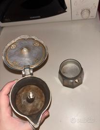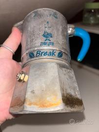 Una MACCHINA DA CAFFÈ MOKA DA 3/4 TAZZINE DA CAFFÈ (5 tazzine se in tazzine piccole e 5 caffè ristretti),Originale Marca:”BIALETTI”MADE IN ITALY,modello:”BREAK”,USATA ABBASTANZA MA PURTROPPO SI È ROVINATA FUORI ESTETICAMENTE PERCHÈ NON SAPEVO CHE NON SI PUÓ LAVARE IN LAVASTOVIGLIE LA MOKA,VINTAGE MA USATA ABBASTANZA POCO PERCHÈ LAVORAVO NEI BAR E BEVEVO QUASI SEMPRE LÌ IL CAFFÈ E ORA HO UN PIANO A INDUZIONE E NON VA A INDUZIONE MA CA SOLO CON IL METANO,è esattamente come in foto:VEDERE TUTTE LE FOTO,usata e un pó “vissuta” come mostro in tutte le foto ma integra con tutto originale.