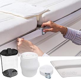 In vendita kit per unire due materassi singoli e trasformarli in un matrimoniale. Il kit include: Cinghia di fissaggio con gancio in acciaio Fascia imbottita morbida IKEA Prodotti acquistati 3/4 anni fa, perfettamente funzionanti. Presentano solo normali segni di usura dovuti al tempo. Ritiro a mano in zona Milano Gallaratese.