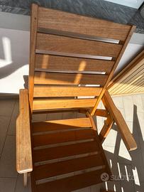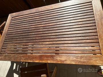 Unopiù tavolo in legno di teak , completo di 4 sedie con braccioli. Tutto di Unopiù, nota marca del lusso. Il tavolo, che ho sempre messo al riparo in casa in inverno, è smomtabile per facilitarne il ricovero, le 4 sedie si ripiegano (vedi foto)