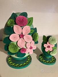 Coppia di uova decorative, realizzate con la tecnica del quilling , carta arrotolata, interamente realizzati con cartoncino colorato e colla . Il più grande alto circa 16 cm , il piccolo circa 10 cm. Ovviamente fatti a mano e pezzi unici. Ottima idea regalo.