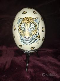 Vendesi uova di struzzo decorate e dipinte a mano, due delle quali con base in argento (quella con leopardo realizzata artigianalmente e assolutamente unica che impreziosisce ulteriormente l'oggetto).