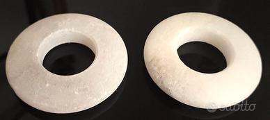 Un uovo in marmo ed un'altro in alabastro decorato, ognuno con il suo supporto dedicato, come ricambio per quello in alabastro altri 2 supporti. Oggetti anni-70-80 nuovi, mai utilizzati, provenienza Volterra. Dimensioni: Uovo in marmo, altezza bon basamento mm 70 circa, diametro max. mm 47 circa - Uovo in alabastro decorato, altezza con basamento mm 60 circa, diametro max. mm 44 circa - Basamento, diametro mm 58 circa, con spessore di 11mm circa.