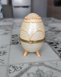 Uovo di struzzo decorato, in ceramica, contenitore vintage per anelli e piccoli gioielli o altro