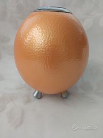 ‼️IDEA REGALO ‼️Vero Uovo di Struzzo porta candelina. L' oggetto è nuovo, Presenta la parte superiore con un incavo cromato dove poter inserire una candelina in sicurezza, sulla parte inferiore tre piedini cromati ne garantiscono l' appoggio e la stabilità. L' uovo ha una circonferenza di 40 cm. mentre l' altezza totale compresa di piedini è di cm. 14,5