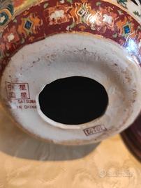 Uovo in ceramica decorato cinese , vintage Sat Suma d'epoca . Dipinto a mano , con supporto.
