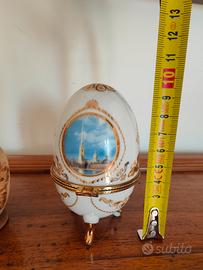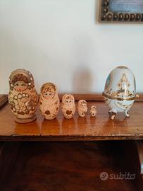 Uovo in ceramica con apertura in buone condizioni più Matrioska in legno in ottime condizioni