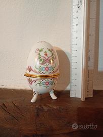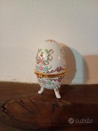 Uovo portagioie in ceramica. Coperchio con apertura a cerniera.
