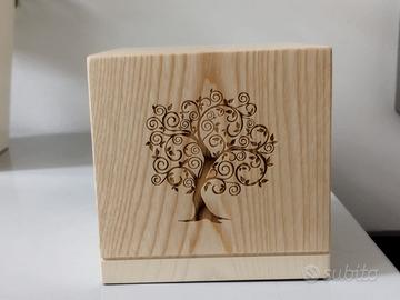 Urna Cineraria Caprai in Legno – Cubo DecoratoUn incontro tra natura, semplicità e simbolo.
