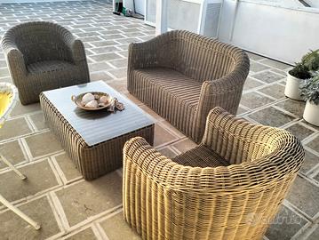 tavolo Emu con sedie poltrone e divano in vimini da esterno con tavolino camera ragazzi ottimo stato