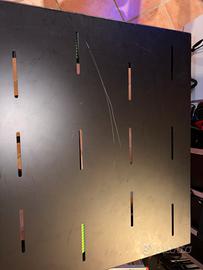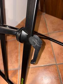 Tavolo/supporto per DJ o tastiera Incluso telo nero per coprire cavi e supporto ad X Materiale: acciaio Superficie: Rivestimento a polvere nero Colore: Nero Max. profondità supporti: 480 mm Altezza max: 43 mm Larghezza: 1000 mm Profondità: 465 mm Carico massimo (ogni supporto): 60 kg Adatto per tubi del diametro: 25 - 35 mm Peso: 13,62 kg, 6,62 kg L’articolo presenta segni di usura come visibile in foto…graffio superfice del tavolo e cerniera della borsa per il trasporto PREZZO LEGGERMENTE TRATTABILE NO PERDITEMPO