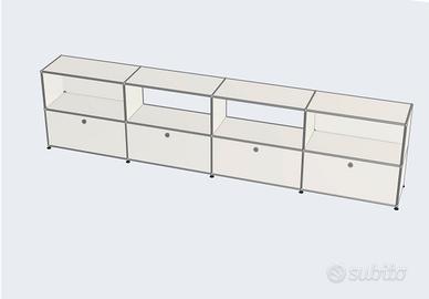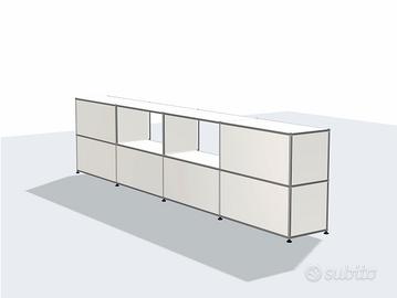 USM Haller Sideboard XL, design da ufficio o moderna credenza da casa modulare. Acciaio tubolare, pannelli modulari Vendo con 4 elementi completi (nelle foto sono montati solo 3 elementi). Versatile, ogni singolo elemento è smontabile. Come NUOVA, nessun segno Colore RAL 9010 Valore listino a nuovo oltre Euro 3800 Vendo a Euro 1000 Spedizione: solo completamente smontata, previo accordo a carico dell’acquirente Costi spedizione, smontaggio, imballaggio e protezioni (peso tot. 179kg) circa euro 350.00/450.00 Misure: mm 3023 x 373 x 743 Nelle ultime 2 foto si vede la conformazione reale con il quarto elemento attualmente smontato