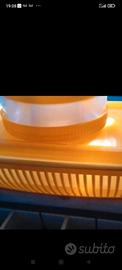Vari utensili da cucina, come da foto: un vassoio in plastica giallo sole set colore arancione composto da: cestino per il pane una scatola porta alimenti rotonda con tappo arancio altra scatola porta alimenti rettangolare, anche essa con coperchio arancio. Altri utensili da cucina vari, vedi foto. In regalo, peschiera per cuocere il pesce in court bouillon in alluminio. Ottime condizioni. Spedisco in tutta Italia con Tutto Subito.