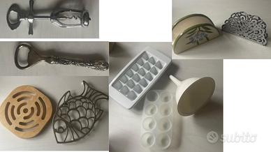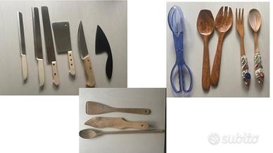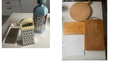 Vendo coltelli da cucina, grattugie multifunzione, taglieri, sottopentola, apribottiglie, caraffa dosatrice con cucchiaini dosatori, mezzaluna, cucchiaio per gelato, pelapatate... come da immagini allegate