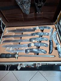 Valigetta con 24 pezzi Muller nella sua confezione originale, tutto ancora incartato tranne 1 coltello e 1 affilacoltelli .