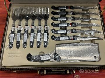 Valigetta solingen design, organizzata su 3 piani. Contiene forbici, posate e coltelli di vari tipi come da foto. Nuovo con plastiche originali.