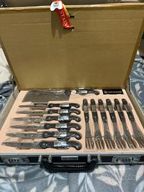 Set coltelli, posate e accessori 25 pezzi, mai usato imballato come da foto. Dotato di valigetta con combinazione