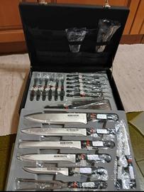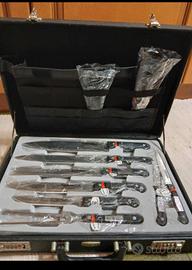 Valigetta con set professionale di 23 pezzi tra forbici, coltelli e forchette. Ancora celofanate. Mai usati.