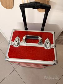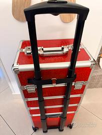 Vendo per inutilizzo valigetta per unghie con manico e rotelle. Dimensioni 72x33x24 (con manico aperto misura 92cm)