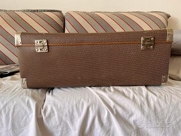 Valigia vintage marca Samtex anni 60… la valigia non presenti particolari danneggiamenti… cerniere e chiusure funzionanti… la rende particolare i paracolpi in alluminio.. ottimo come complemento d’arredo!!!dimensioni 55x21x42