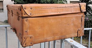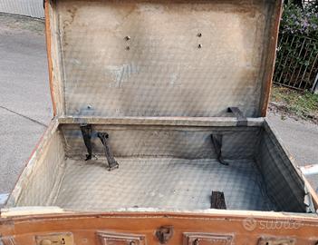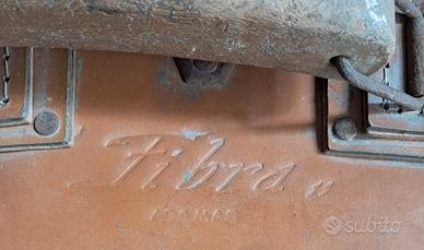 Valigia anni '30-'40 in cartone pressato con visibili segni d'usura.