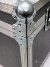Valigia corazzata in composito, alluminio e acciaio con chiusure a vite regolabili.