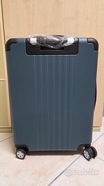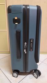 Trolley Montblanc, bagaglio a mano compatto in policarbonato leggero con dettagli in pelle, manico a più lunghezze e organizzazione con più scomparti.