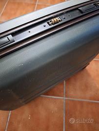 Vendo una valigia rigida, perfetta per viaggi in aereo o treno dove la leggerezza e la resistenza sono essenziali. Il modello, privo di maniglia estensibile, è dotato di due ruote e di una comoda maniglia laterale per un trasporto facile e agevole.