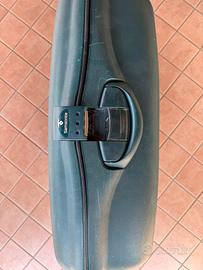 Valigia samsonite, con tripla chiusura, codice e ruote posteriori per trasporto.