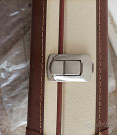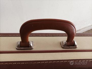 Valigia vintage con design tipico degli anni '60. Perfetta per un tocco retrò nonché molto spaziosa e funzionale, con angoli rinforzati. Ideale per arredamento, collezionisti, oggetto di scena di film, corto, cortometraggio, teatro, rappresentazione teatrale, esposizione d'epoca, arredamento shabby, vetrine, allestimenti, vetrina negozio, studio fotografico, shooting fotografico d'epoca, ecc.
