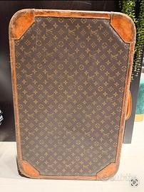 Valigia Louis Vuitton vintage originale, risalente alla seconda metà del Novecento, realizzata in iconica tela Monogram con profili in pelle naturale.