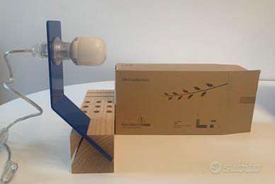 La base in metallo colorato può essere posizionata in diverse posizioni sul blocco di legno per orientare la luce a seconda delle esigenze (lettura,