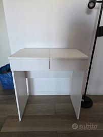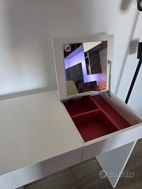 Vicino al cassetto trovi un contenitore con pratici scomparti e coperchio con specchio integrato. Puoi usare questa toeletta anche come scrivania o tavolino e coordinarla con gli altri mobili della stessa serie
