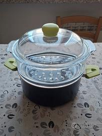 Vaporirà Marca Pyrex per cucinare i vostri piatti al vapore mantenendo tutte le proprietà del cibo, praticamente nuova usata solo una decina di volte. Vendo per inutilizzo. 24 cm di diametro. Materiale vetro + pentola in alluminio antiaderente. consegna direttamente a casa per Zone tra Varese e Legnano