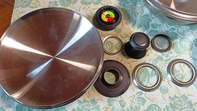 Pentola vaporiera in acciaio inox con accessorio taglia verdure, coperchio con manico intercambiabile, per fornello a gas. Altezza 15 cm, diametro esterno 23 cm