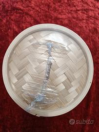 Basta un pò di acqua sul fondo di una pentola e inserire l vaporiera in bambù per cucinare in modo semplice e salutare verdure, carne, pesce.