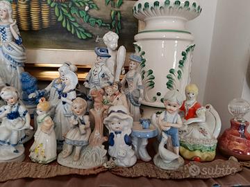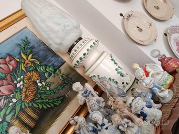 oggetti da collezione vari in porcellana con pezzi antichi come i 2 putti e il lume prezzo per tutto 150 euro