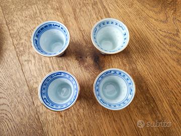 2) Vendo servizio da sake in porcellana cinese vintage, con motivi a chicco di riso. Le condizioni complessive sono ottime, segnalo unicamente una piccola sbeccatura in uno dei quattro bicchierini, come visibile dalla foto.