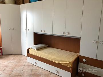 - Cameretta a ponte bianca con angolo cabina armadio lato sx (sinistro) , lunghezza 4,95 mt molto spaziosa, letto singolo con secondo letto estraibile. prezzo 750,00€