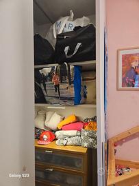 Vendo vari mobili, di seguito dettagli: foto n.1,2,3 ARMADIO Mondo Convenienza comprato l'anno scorso , praticamente immacolato unica pecca lo zoccolino sotro le 2 ante rotto durante il montaggio, misure : profondità 58.5cm le 2 ante 91cm 1 anta dell'angolo 61 cm angolo interno 97x97cm altezza 2.50mt prezzo €350 (comprato 570€) Foto 3 2 mobili.ikea Kallax misure: 42 x 147 comprati a 50€ l'uno vendo a € 40 entrambi Foto 4 cassettiera ikea misure prof48.5mt larghezza 80cm altezza 77cm comprata €120 vendo a €50 Foto 5/6/7 Composizione Ivar Ikea misure: -parte dove sono i bicchieri largh 87cm, prof 30cm , altezza 2.27mt -colonna con angolo misure: angolo 51.5x51.5 cm altezza 1.78mt -colonne singole prof 30cm , larghezza 48.5 cm , altezza 1.78mt - libreria a 4 mensole larghezza 89.5cm, prof 30cm , altezza 1.78mt - mobile tv largh 84.5 cm,prof 30cm ,altezza 1.20mt SI VENDE TUTTA LA.COMPOSIZIONE ASSIEME , comprata a 480€ , vendo a €200. NB. lo smontaggio dei mobili ed il ritiro a carico dell'acquirente. Per qualsiasi info, in privato grazie.