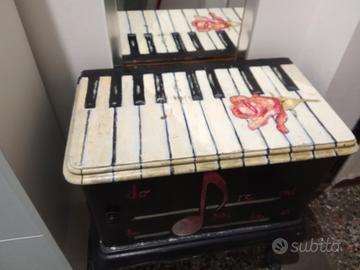ribaltina dipinta ,comodino dipinto fiori,colonnina bagno rotante con specchio,e comodino pianoforte