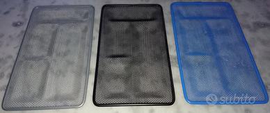 - portaoggetti in rete metallica con scomparti sagomati, vari colori (es. cancelleria ufficio) 2€