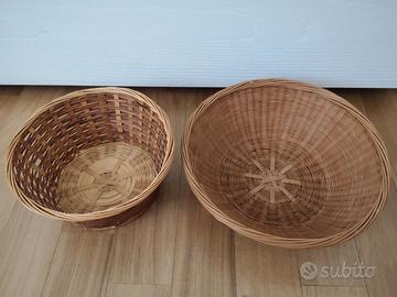 2 cestini in vimini per il pane 1,5 euro l'uno (uno con diametro superiore 16cm e base 12cm e l'altro con diametro superiore 21cm e base 13cm)