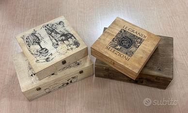 Vendo cassette scatole di legno per contenere vino o altro Le cassette sono prive del contenuto. varie misure Sono in buone condizioni, utilizzate per mostra e potrebbero presentare graffi superficiali. Le cerniere di chiusura sono tutte funzionanti. Le cassette possono essere carteggiate e colorate con qualsiasi tipo di impregnante. Alcune sono state colorate con impregnante color noce; altre presentano solo alcuni lati colorati in noce scuro. Misure in cm: 53x35 h 19 2 cassette da 20 euro cad. 50x32 h 17 4 cassette da 20 euro cad. 51x35 h 9 1 cassetta da 20 euro cad. 36x35 h 10 1 cassetta da 20 euro cad. 27x36 h 11 1 cassetta da 20 euro cad. 27x36x19 senza coperchio 1 cassetta da 20 euro cad. Si vende anche in blocco; si accettano offerte. NB: ripeto non ci sono bottiglie o altro all'interno