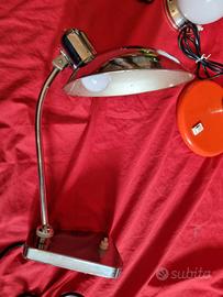 Lampada rossa da tavolo Ufo ottimo designer moderno degli anni 70 /80 rossa dell'era spaziale con braccio flessibile per svariate posizioni, vedi foto. Anche il paralume stesso può essere riposizionato.