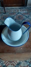 2 sgabelli 50 euro 2 secchi in lamiera 15 euro kit metallo smaltato catino e brocca 20 euro