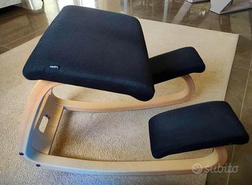 Vendo seduta ergonomica Varier in legno, color nero, completa di feltri protettivi. Misure: 52x72x51 cm Acquistata nel 2021, condizioni ottime.