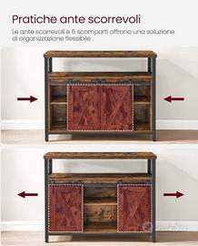 Spazio flessibile: 6 scomparti inferiori e 3 ripiani regolabili su 3 livelli (o rimovibili) per oggetti di varie dimensioni. Il piano da 33 x 100 cm offre spazio extra