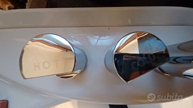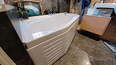 La vasca misura 150 x 97, lato sfondato circa 67. È stata usata pochissimo, praticamente nuova. La vasca è completa di rubinetteria e telaio di sostegno. Vendo inoltre lavandino catalano, sanitari pozzi ginori e mobile bagno tutto nuovissimo. Consultate i miei annunci per detragli