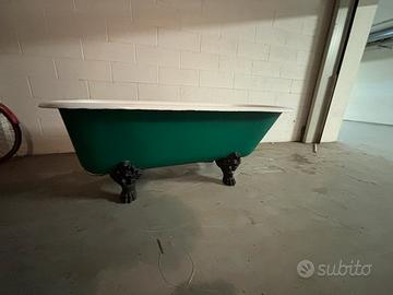 Vasca da bagno in ghisa dipinta di verde con piedi in fusione tipo leone